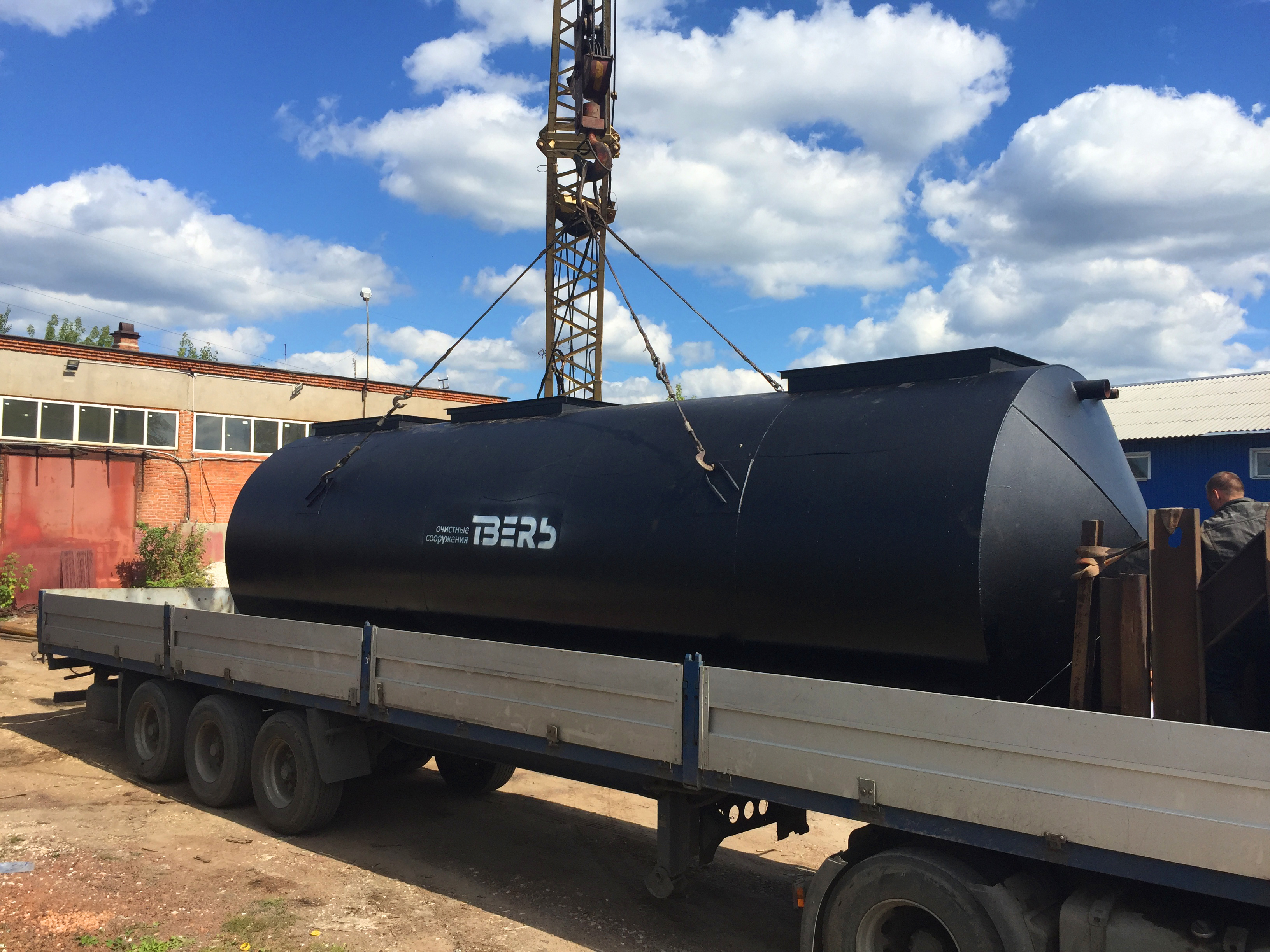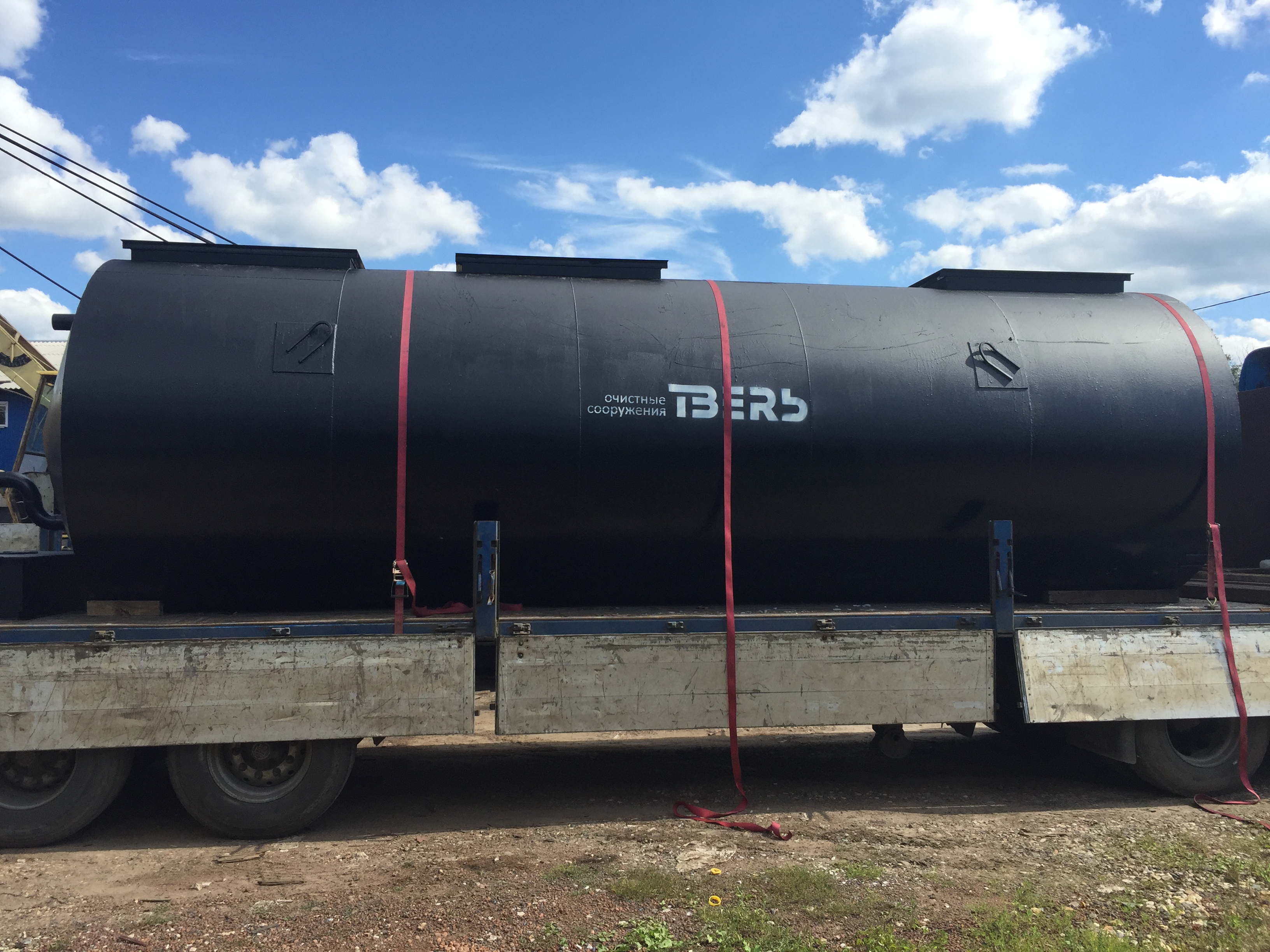 Габариты очистного сооружения: длина 7200 / диаметр 2400 / вес 4500 кг.